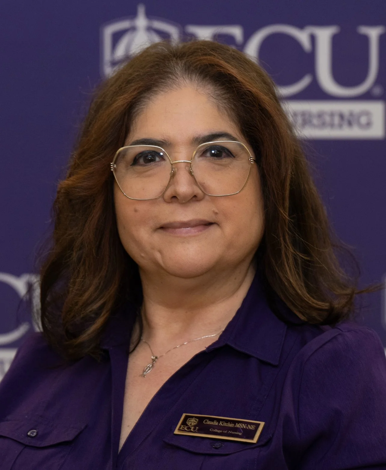Claudia Kitchin, MSN, RN, CRRN is a dedicated nursing educator and clinician serving as a Clinical Instructor in the Baccalaureate Nursing Program at ECU’s College of Nursing. She is originally from Mexico. She holds a Bachelor’s in Nursing from Kaplan University and a Master’s in Nursing Education from UNCW, and began her nursing journey as an LPN at Riverside Health Careers—where she was also a registered Nurse.